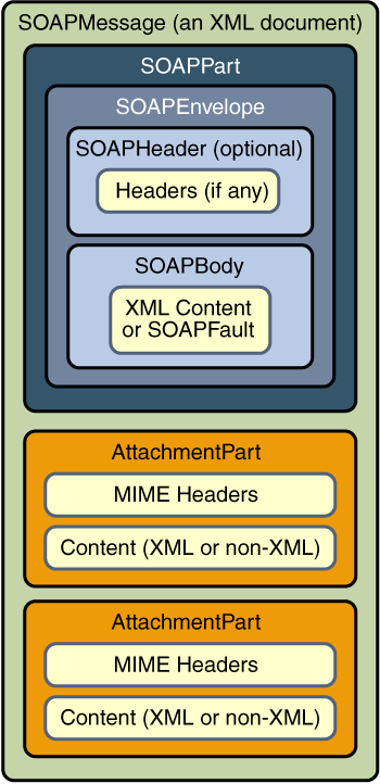 AttachmentPartclass to represent an attachment part of a SOAP message. ASOAPMessageobject automatically has aSOAPPartobject and its required subelements, but becauseAttachmentPartobjects are optional, you must create and add them yourself. The tutorial section walks you through creating and populating messages with and without attachment parts.If a