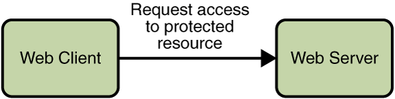 Since the client has not yet authenticated itself to the application environment, the server responsible for delivering the web portion of the application (hereafter referred to as web server) detects this and invokes the appropriate authentication mechanism for this resource. For more information on these mechanisms, read Security Implementation Mechanisms.
